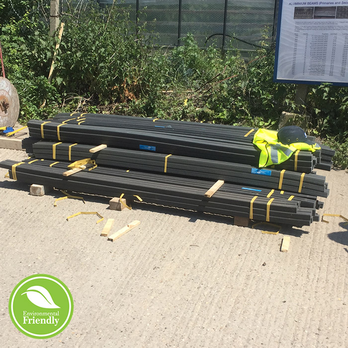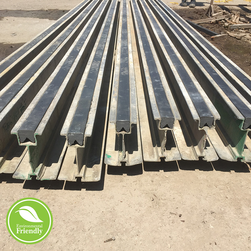 This is manufactured from a recycled waste plastic, made to a specific formula, with the primary focus to provide an environmentally cost-effective solution to replace wood.